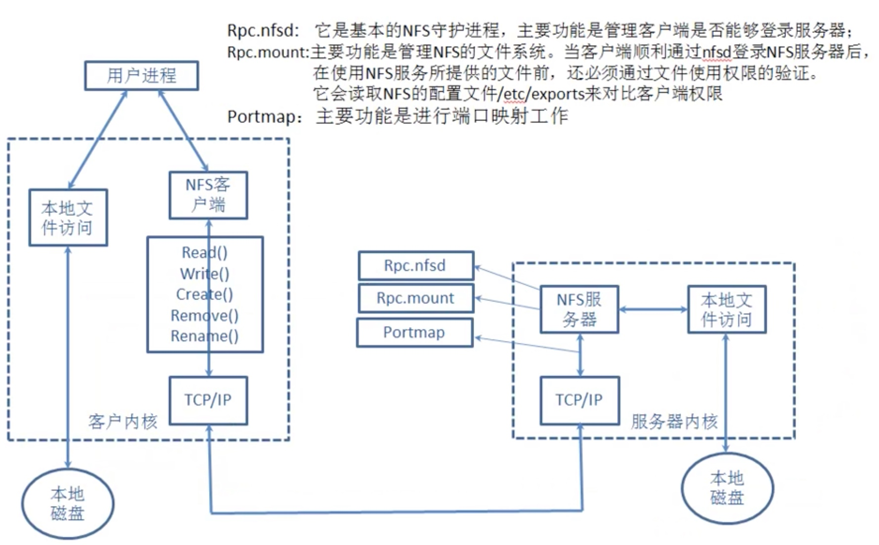 4.在使用NFS服务进行文件共享之前,需要使用RPC(Remote Procedure Call远程过程调用, 服务将NFS服务器的IP地址和端口号信息发送给客户端。