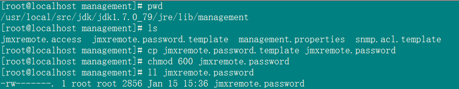 - 找到进入 jdk 目录下 $JAVA_HOME/jre/lib/management, 复制文件并修改权限
